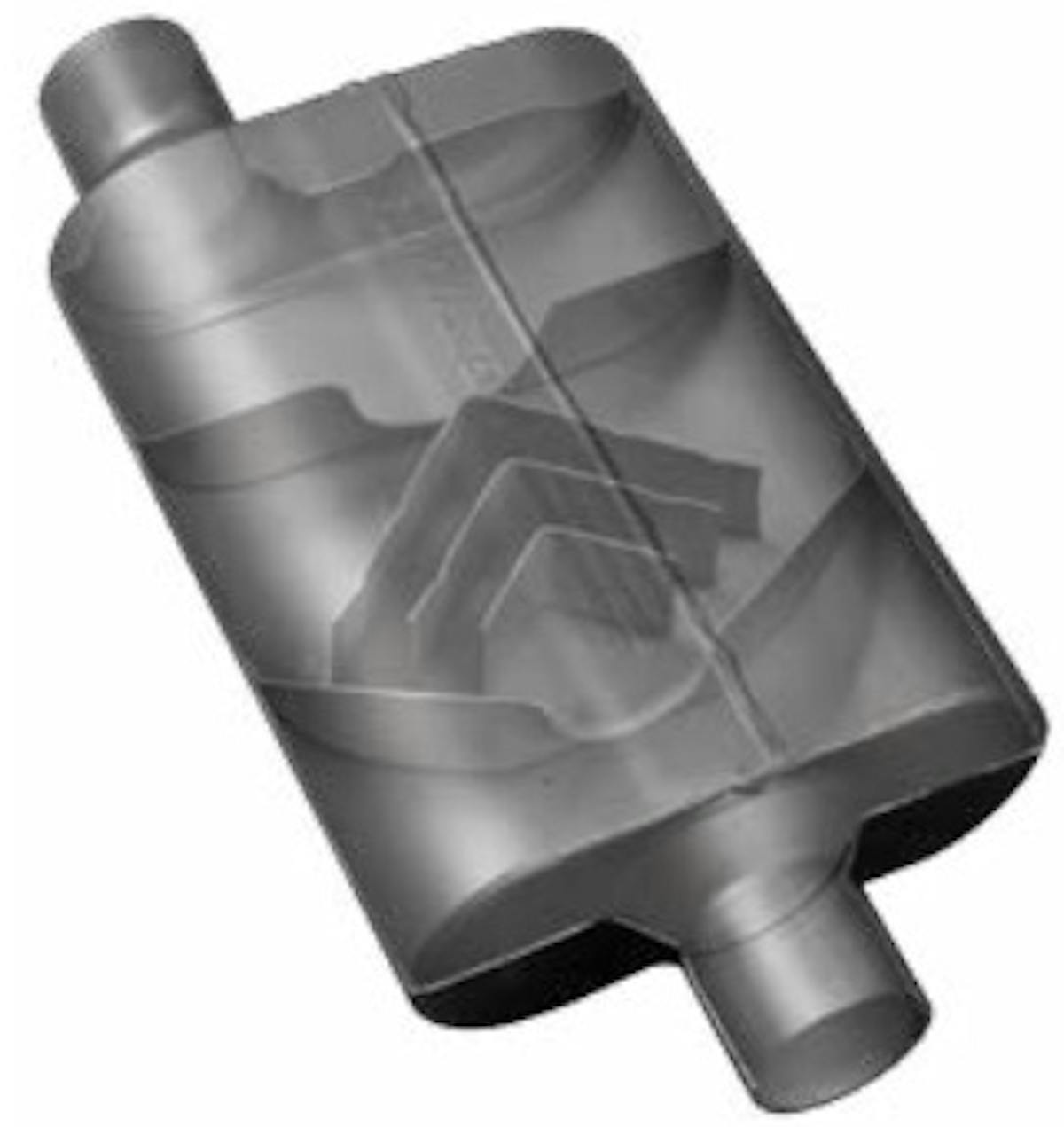 Absorptive type mufflers gained serious recognition in the late 50s by hot rodders and have continued to thrive with enthusiasts that want a very aggressive high performance sound. These straight-through designed mufflers produce a tantalizing sound and are sought after by many enthusiasts.