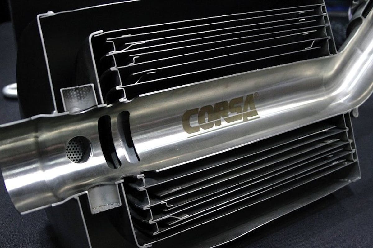Noward explained how Corsa design process works with their engineers. “Our proprietary RSC technology is designed differently dependent upon the sound level we are targeting. We change our exhaust note by changing how we design our RSC technology inside of the muffler removing frequencies or allowing additional frequencies to be heard.” To Corsa, targeting the sound is primary to designing the internal parts of each muffler.
