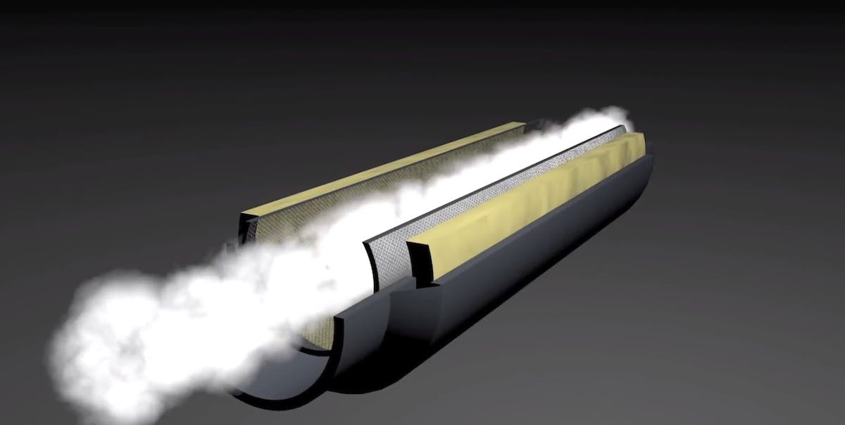 Absorptive mufflers are designed so that the sound entering the muffler interacts with packing material and is converted to heat by the frictional process. This muffler’s performance relies on absorption by the packing material for performance.