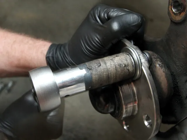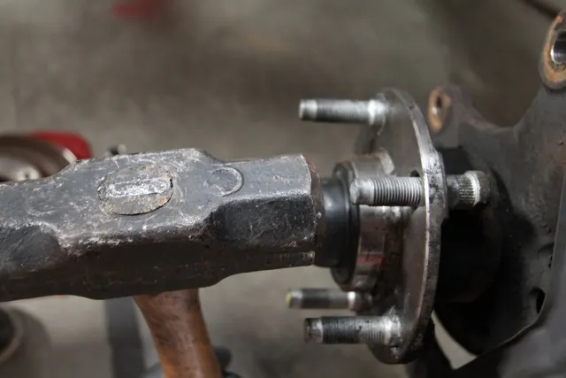 We used the lug nut and double-washer arrangement to draw the new studs into the hubs.
