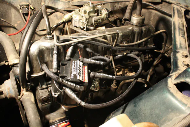 When you are working with a vehicle that makes around 65 horsepower to the rear wheels, you need that power to work as efficiently as possible – loosing up hill drag races to semi trucks can be embarrassing. Adding insult to injury is a vehicle that can’t even get good gas mileage on that little horsepower. If you have ever owned a classic car with a stock inline 6 cylinder, you know exactly what I am talking about. Though with DUI’s (Davis Unified Ignition) HEI Performance distributor, we were going to gain back some of those lost ponies… and fuel economy.