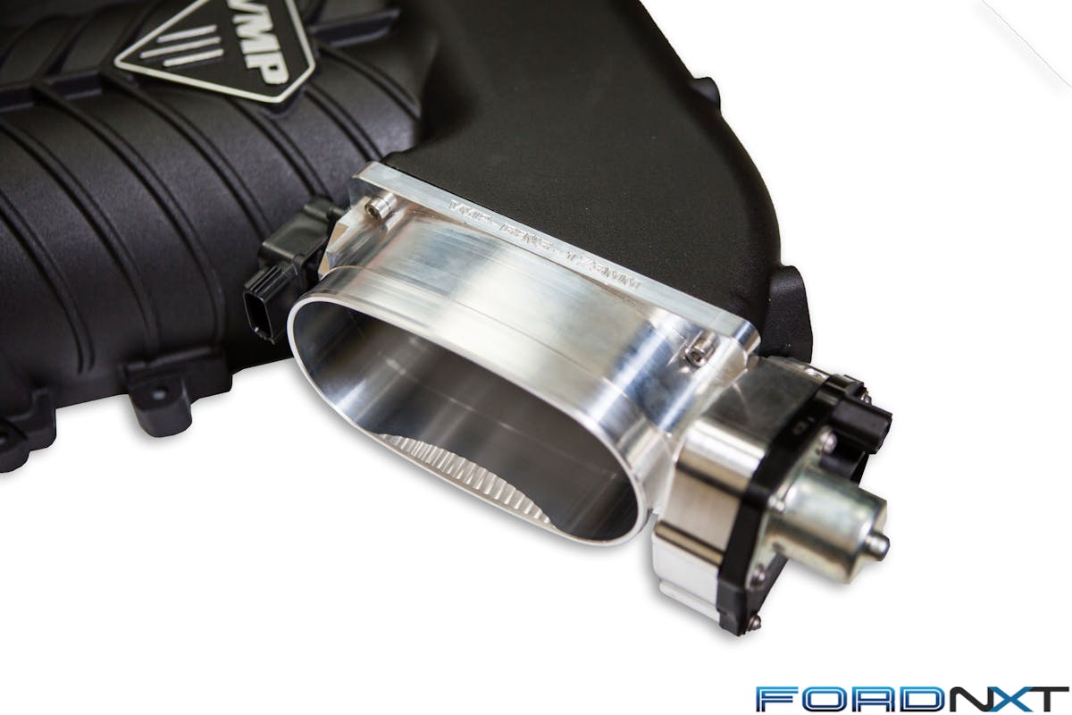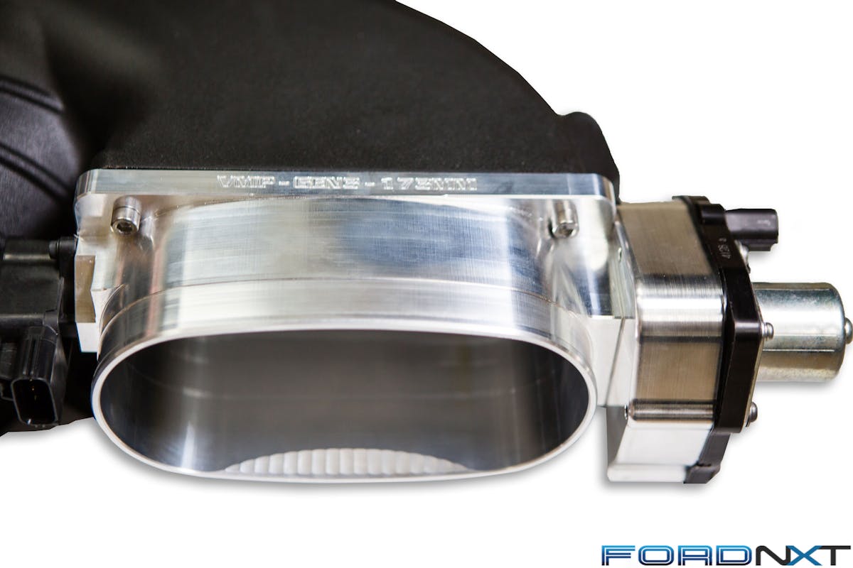 To feed this beast, VMP developed a massive new throttle body for race applications. This is crucial, as positive displacement superchargers flourish with less inlet restriction. The choice between a large and a huge throttle body simply comes down to your vehicle’s intended use.