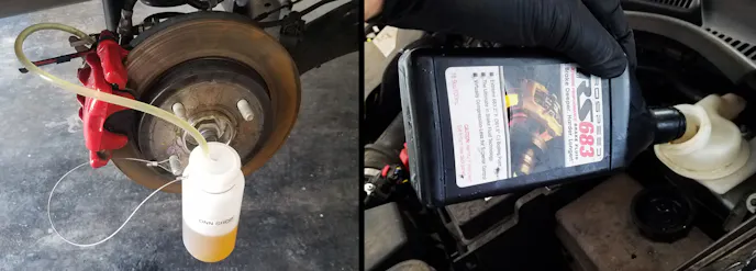One of the things Puskar suggested when upgrading to his high-performance brake pads in an OEM brake system is to upgrade the brake fluid to keep up with the high temperatures racing causes. Street cars doing track duty, like our “Way of the FiST” Fiesta, create a lot of heat in the brake system. Utilizing a racing brake fluid that can handle the high temperatures is an easy upgrade and doesn’t cost much. We replaced the entire capacity of the Fiesta’s brake fluid with Prospeed RS683 Xtreme Performance Brake Fluid.