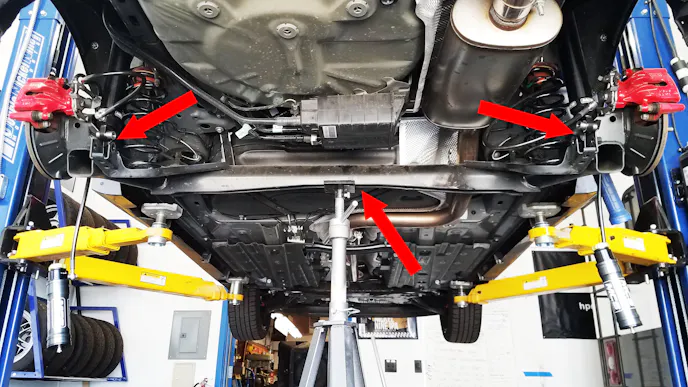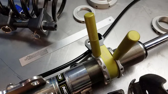 Once our rear shocks were installed, we set the rear shocks to the same baseline recommended settings from Motion Control Suspension: six clicks of compression and eight clicks of rebound. The installation was extremely easy. After we had all four shocks installed, we checked our alignment using Smart Strings and we were ready to roll out of the garage.