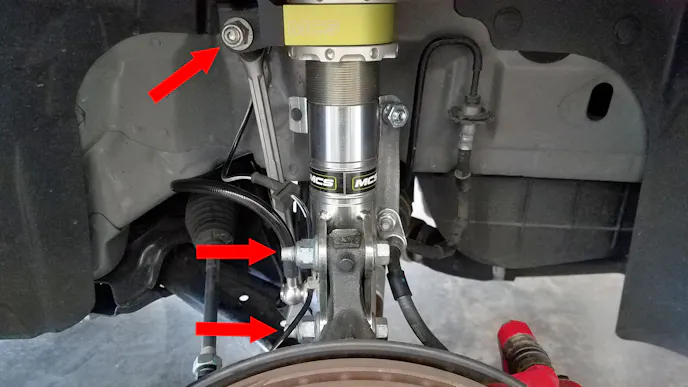Once we had the front set installed with ease, it was time to tackle the rear shocks. The main difference between the front and rear installations was the importance of holding up the rear axle beam because the lower shock bolts are the only things keeping the beam from falling down.