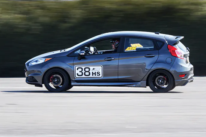 Right away on the track, the car felt better. The MCS dampers made the vehicle more predictable and kept it from “porpoising” (which is common with OEM struts/shocks allowing the car to bounce up and down in corners). We dialed in some more rebound to the rear shocks, and it really helped the car turn in. The Fiesta had less push and a more neutral feel. Where the shocks really came into play was keeping the car flat through the corners. By dialing more and more compression in both the front and rear shocks, we were able to keep the car flat on the ground.