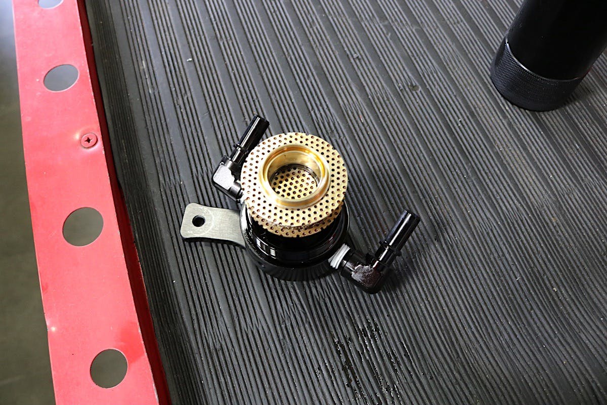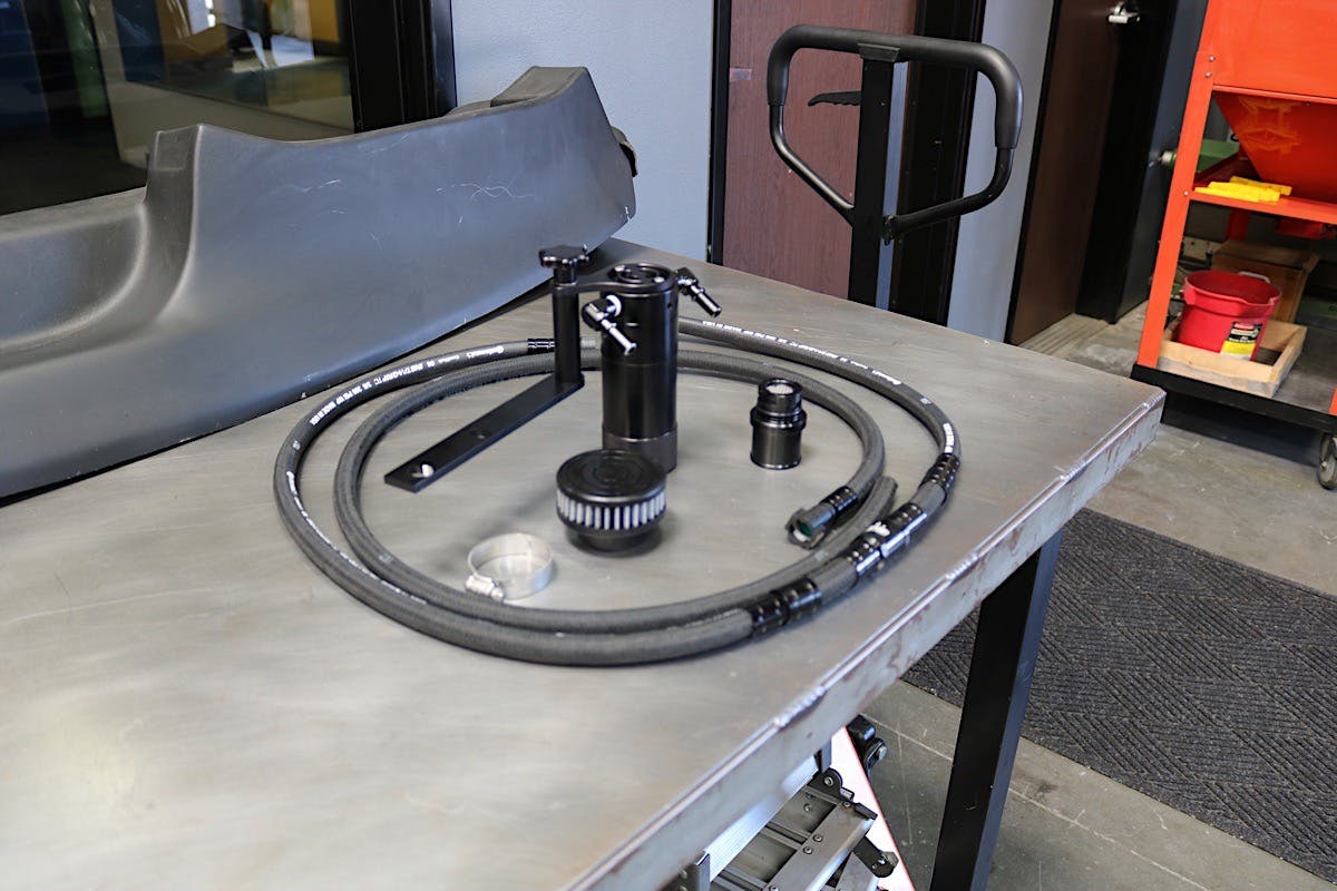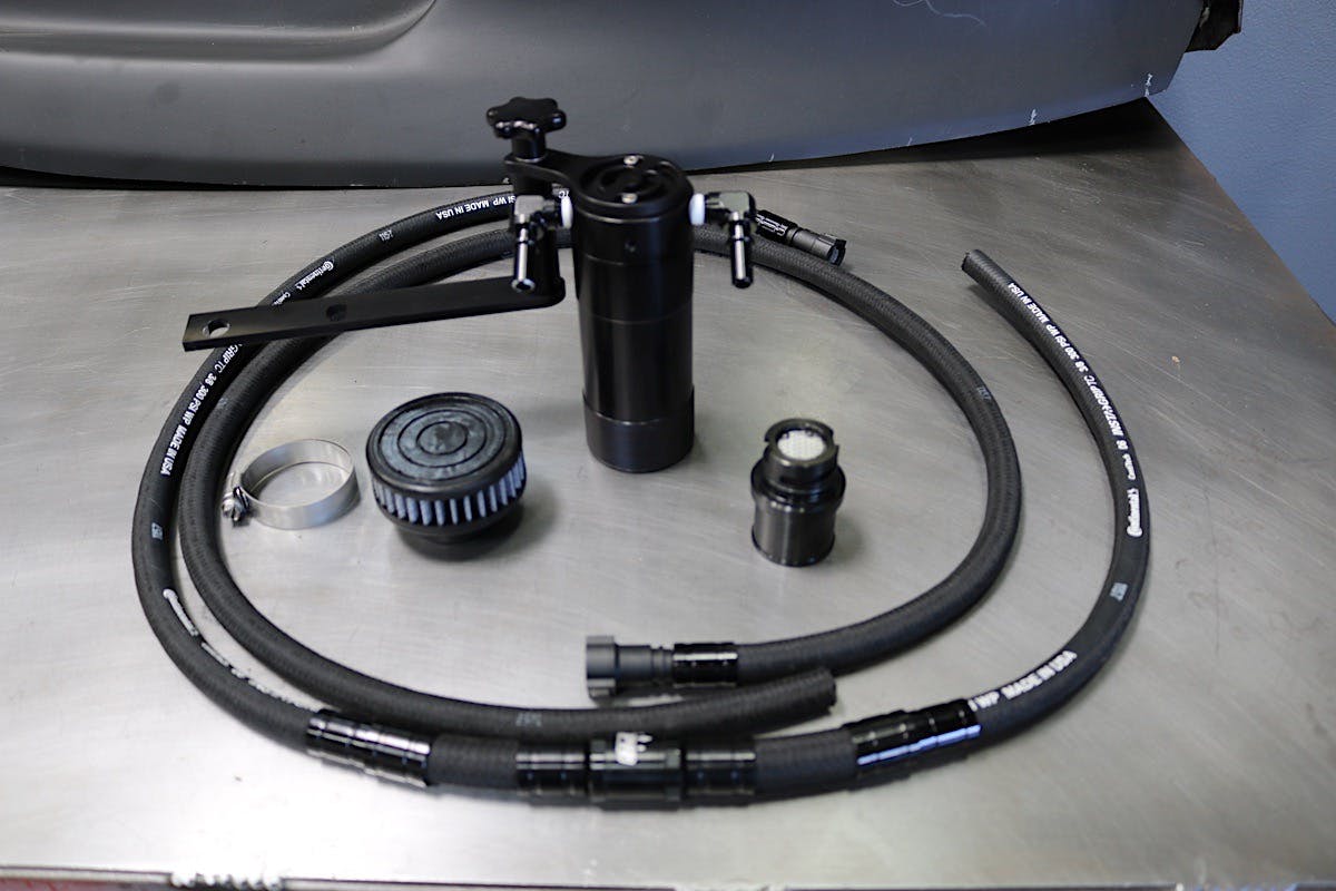 With all that in mind, we ordered the UPR Products Focus RS Plug and Play catch can kit (PN 5028-170). The catch cans are custom built based on the order received, so we were surprised how quickly the part was shipped to our Southern California headquarters. Once we unboxed the equipment, it was clear we had made the right choice. For starters, the black show quality finish was quite impressive. The kit comes with high-quality, 5/8-inch braided hoses which feature quick disconnect fittings allowing easy removal of the catch can.