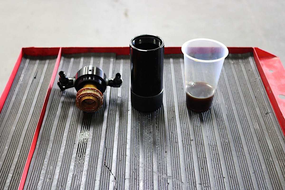 Even before we opened the catch can we could already tell there was liquid trapped inside. Once we finally opened the can, you can see just how much oil we found.