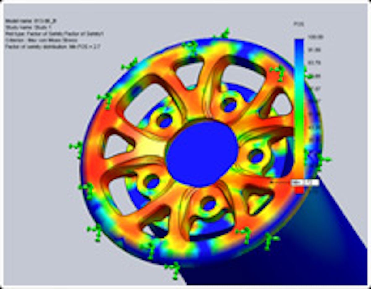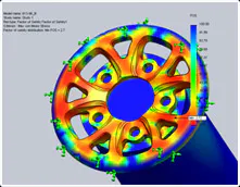 It doesn’t begin and end with the FEA three dimensional modeling and designing however, “There’s not 100% correlation between FEA and the real world,” Smith says. “We have an in-house test center, and we use it to test the limits on a regular basis, right here on our test machines. When we think we have a perfect design, we will put the wheel on a radial test machine, a stress test machine and we do an impact test. All those things happen and we learn from those results. We factor in what we learn from physical testing back into the FEA process.