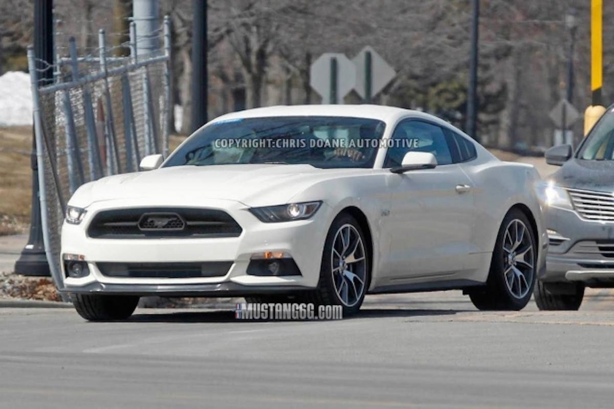 The 2015 Mustang hasn’t even hit Ford dealer showrooms yet, and we’re already seeing spy photos of what is likely the first special edition model. Appropriately that model is in celebration of the car’s 50th anniversary. Show here in photographs sent to us from Mustang6g.com, this particular model has subtle cues to set it apart from standard Mustangs.