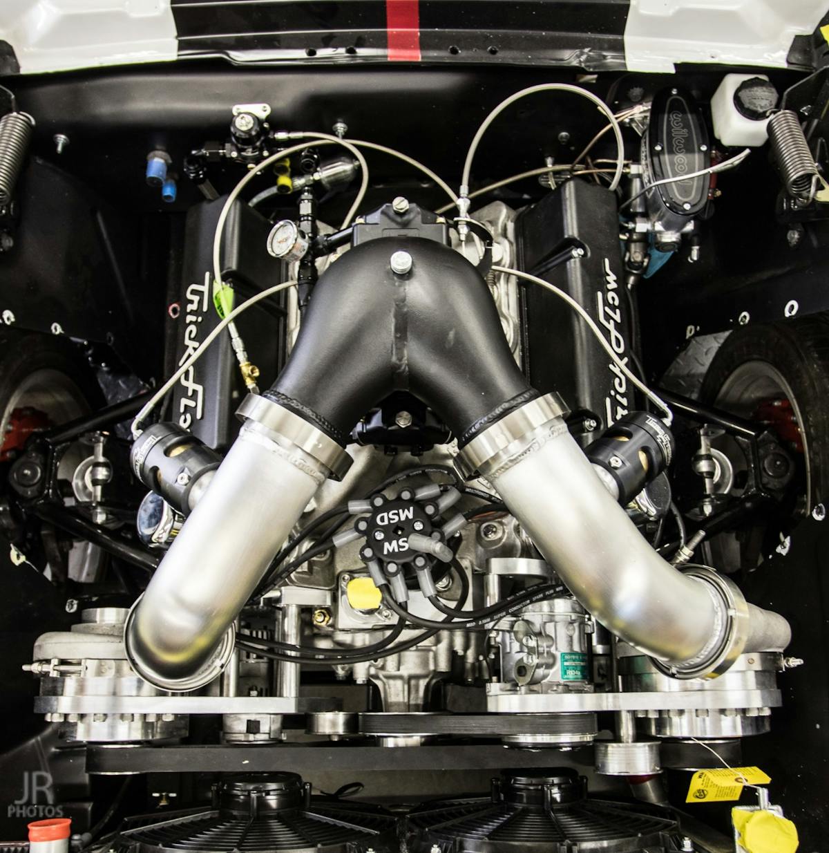One of the primary reasons that so many companies agreed to collaborate on this build was due to its retro approach to performance upgrades. Instead of going with the modern Coyote swap, Tim kept things carbureted on his classic Ford Mustang, opting for a vintage 427 Cleveland V-8 engine and an equally old school 4-speed Toploader transmission. This nostalgic approach, paired with all of the historic restorations being done to the vehicle, opened the door to all forms of sponsors, two of which played significant roles in the creation of this car: aftermarket engine specialists Titus Performance and TorqStorm Superchargers.