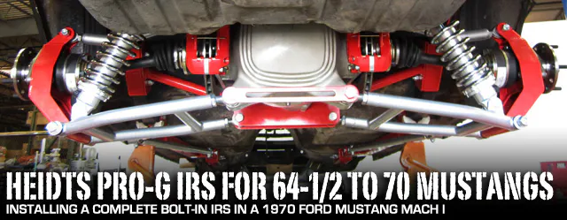 Hot on the heels of the Pro-Touring scene, Heidts Hot Rod and Muscle Car Parts has done it once again with their completely bolt-in PRO-G Independent Rear Suspension system for the 1964-1/2 to 1970 Ford Mustang. This unit is based on the same award-winning IRS kit used for early Camaros, and like the Camaro kit this one will give you handling that will leave your competition scratching their heads.