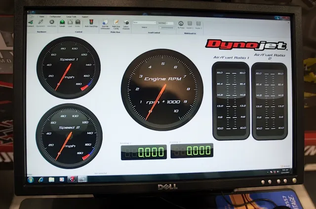 The last facet of the PowerCore software we’ll discuss here is the new display for dyno operation. Similar to a dash, operators can set up a number of dyno “gauges” and display them on screen as an analog or digital representation in a variety of configurations. This allows tuners and operators to monitor a variety of dyno inputs, all at once including third party, non-Dynojet info, and even data from an OBD II port on the vehicle.